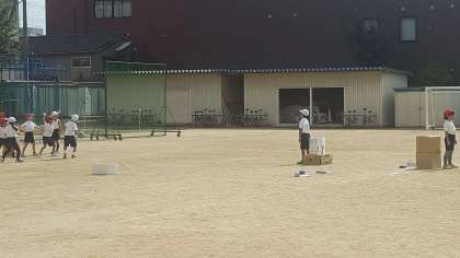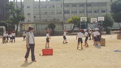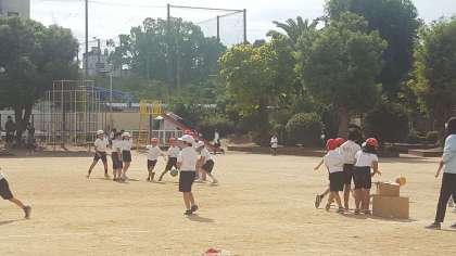 2年生の体育の様子です。今日は6つのコートに分かれて、試合をしました。攻めたり守ったり、チーム力が問われるゲームです。みんな頑張りましょう。