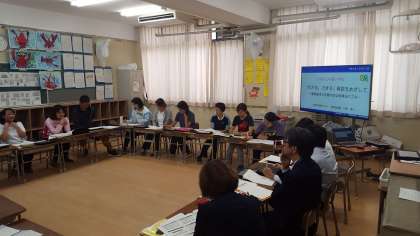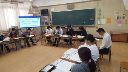 3時45分より研究討議会を行いました。教育センターより、石橋・川野教育指導員のお2人に出席いただいきました。