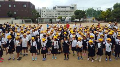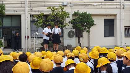 今日は全校朝会がありました。校長先生のお話の後のじゃんけんをしている様子です。
