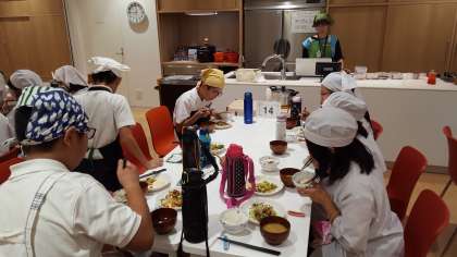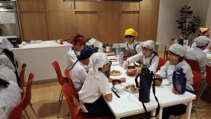 がんばった成果です。楽しくしっかり食べましょう。カツオのふりかけは、めちゃめちゃおいしかったですよ。絞っただしがらをフライパンで砂糖としょう油で炒めて水分を飛ばし、ごまを入れるだけです。お家でもエコクッキングとしてチャレンジしてみてください。
