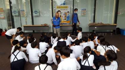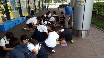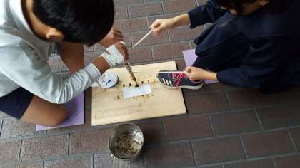 3人ずつのグループに分かれて、火起こしに挑戦しました。そして、多くの子ども達が火起こしに成功しました。これでサバイバルな世の中になった時も生きていけますね。
