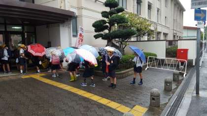 傘をさしての登校となりました。今日は教室で静かに過ごしましょう。