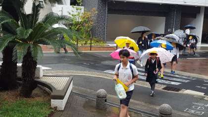 地域・保護者の皆さん。雨の中の見守りありがとうございました。