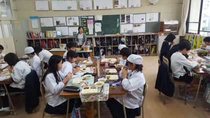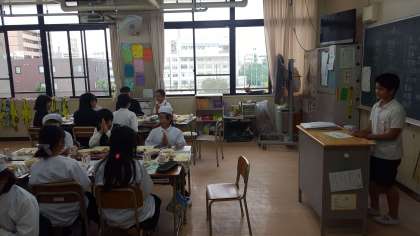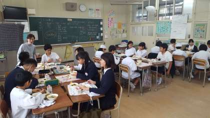 6年1区での交流の様子です。最初は緊張しながら食べていましたが。だんだんと会話が弾んできました。