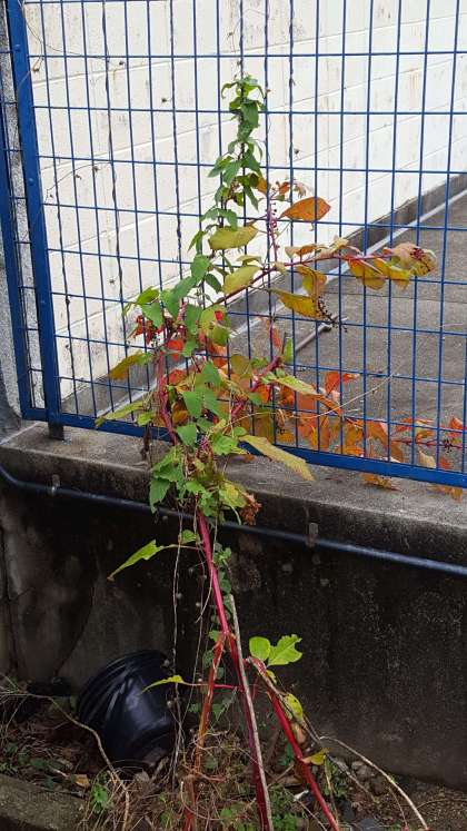 セキレイが運動場で走り回っていました。ヨウシュヤマゴボウが、自生しています。