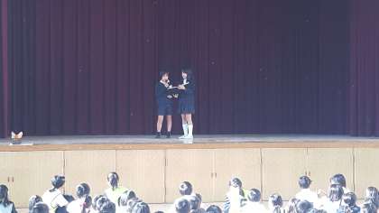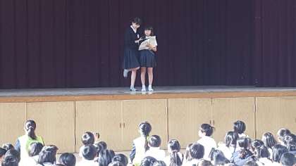 月曜日は祝日で児童朝会がないので、文字探しの後に、看護当番の引き継ぎをしました。今週の反省と来週の目標が発表されました。