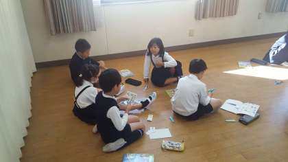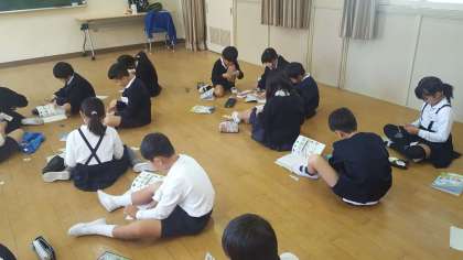 1時間目に3年生の外国語活動の授業がありました。教科書についている、動物のカードを切り抜いていました。カードを使って名前を覚えます。