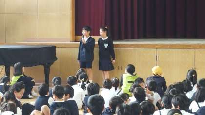 今日の児童集会は、「私は誰でしょう」でした。声を聴いて誰かを当てます。班で相談して回答しますが、全問正解をしたのは、1グループだけでした。誰の声が難しかったのかは、子ども達に聞いてみてください。