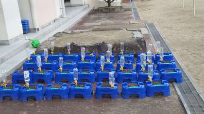 桜がきれいに色づく前に落葉しそうです。1年生がチューリップに球根を植えました。芽が出るのが楽しみです。