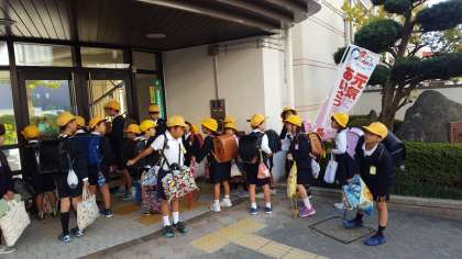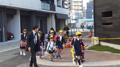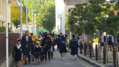 風もない穏やかな朝、子ども達は元気に登校しています。