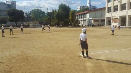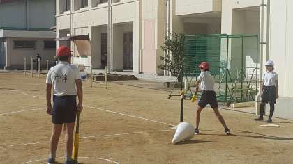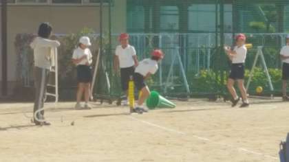 5年生が、Tボールの試合をしていました。みんな楽しく試合をしていました。