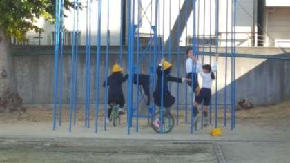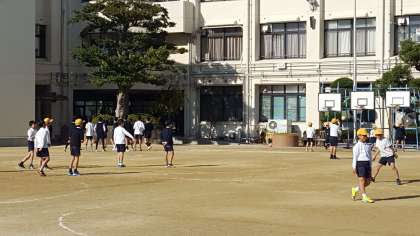 暖かくなった昼休み、運動場はにぎわっています。ボール運動が多いですが、一輪車や遊具で遊ぶ子も多いです。