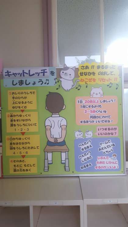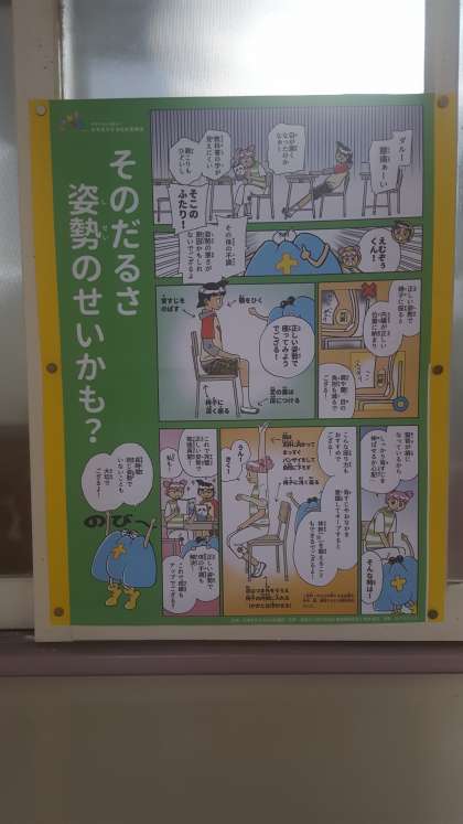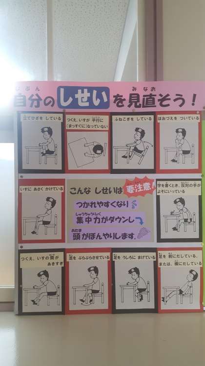 今週は、「よいしせい チャレンジ週間」です。よいしせいに関する掲示物が保健室前にはっています。皆さん読みましょう。