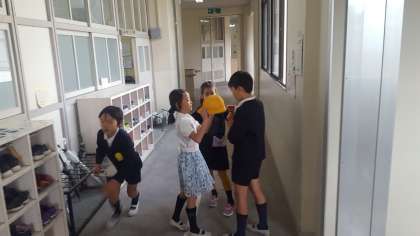 今日の5時間目に4年1組で、図画工作科の授業研究会がありました。「からだでかんしょう」の単元で、美術作品の形をまねて、作品のよさを味わうという学習でした。