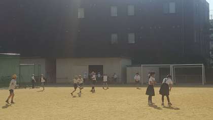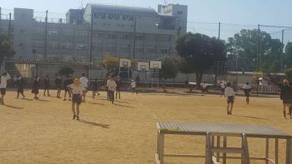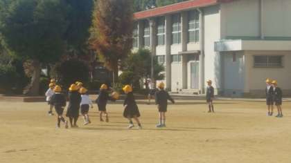 日差しに恵まれ、穏やかな休み時間。運動場は子どもたちでいっぱいでした。どの学年も思い思いに楽しんでいます。でも、教室に戻る際には、手洗いうがいをしましょうね。