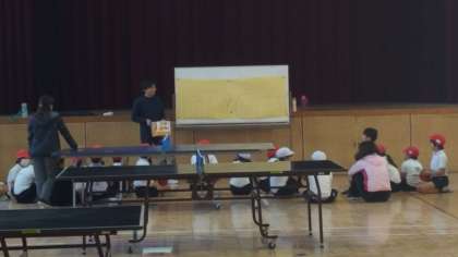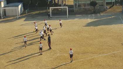 運動系のクラブ活動の様子です。運動場では、サッカーの試合をしていました。寒くなってくるとサッカーーいいですね。講堂では、卓球のトーナメント表を作っていました。優勝するのは誰でしょうか。
