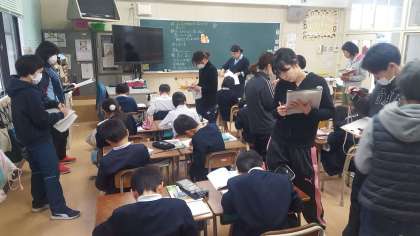 本日2時間目に、3年1組で算数科の授業研究会がありました。単元は分数でした。子ども達は分数のたし算の仕組みを個人で考えて、グループで考えて発表していました。いろいろな考え方が出て、とても楽しい授業になりました。