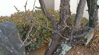 パンジーもしっかり根付いて花を咲かせています。梅のつぼみも膨らんできました。
