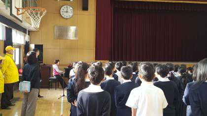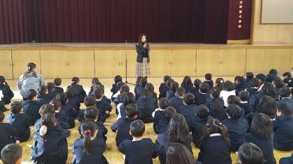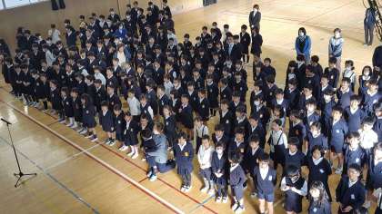 その後、生活指導より冬休みの安全な過ごし方の話がありました。最後に、みんなで元気よく校歌を歌って終了しました。