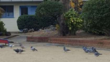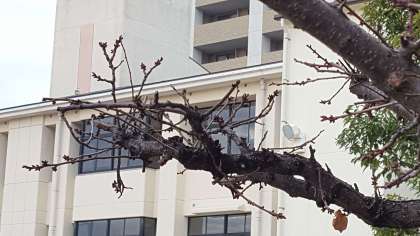 鳩が25羽ほど飛来し、子どもたちのいない運動場を独占していました。校長室前の桜にも芽がついています。春に思いを馳せながらの年の暮れです。