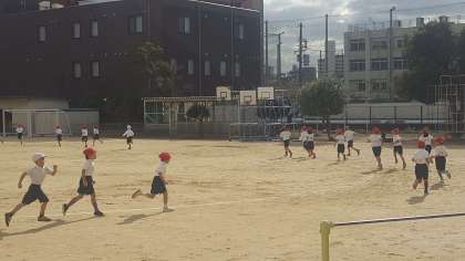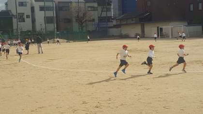 1年生が、体育の授業で6分間走に挑戦しました。みんなそれぞれのペースで走っていました。途中で歩く子も最後まで走りきる子もいました。みんなよくがんばりました。