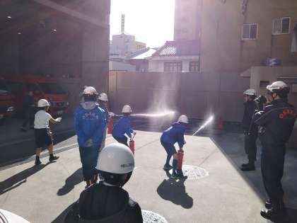 19日の日曜日に、ジュニア防災リーダーの防災研修が、消防署で行われました。多くの子ども達が参加しました。子どもたちは、消火器体験・ロープ結索等、いろいろな研修を受けてきました。
