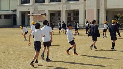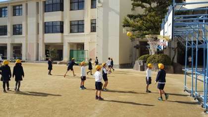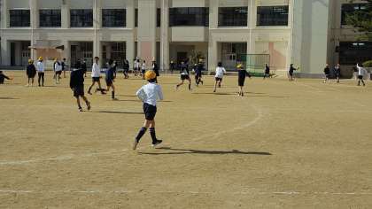 日差しに恵まれた暖かい昼休み。子どもたちは、運動場で元気に体を動かしています。何人かの子どもたちは、昼休みも走っていました。みんな楽しんでいました。