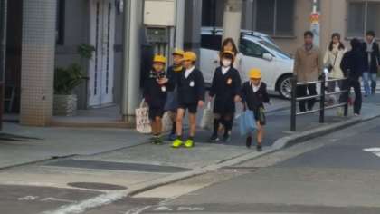 冷たい風の吹く中、子どもたちは元気に登校しています。今日は百人一首大会です。皆さんしっかりがんばりましょう。