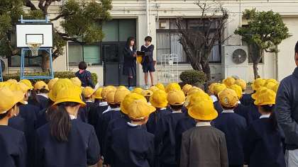 月曜日は全校朝会の日です。校長先生からは、節分の話と体力づくりの話がありました。