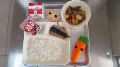 今日の献立は、イワシのしょうが醤油かけ・含め煮・いり大豆・ごはん・牛乳です。