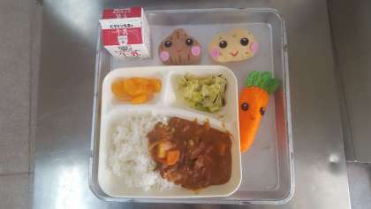 今日の献立は、ハヤシライス・キャベツのひじきドレッシング・みかん(缶)・牛乳です。
