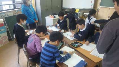 今日は、民族クラブの活動がありました。ハングルの書き方を学習しました。2年生は、体を使って表現したり、3〜6年生は、母音と子音を組み合わせてプリントに記入しました。