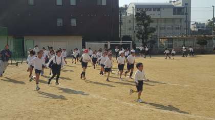 途中で歩いて呼吸を整える時間の後、再び走ります。最後は、整理運動をして終了です。延長した3日間は、天候にも恵まれて気持ちよく走れました。みんなよくがんばりました。運動委員会の皆さんもご苦労様でした。