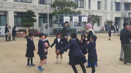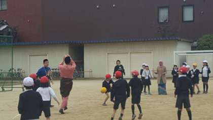 運動場で皆さんは、走り回っていました。けがの無いようにお願いします。