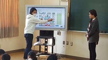 5年生の英語の学習の様子です。英語で支持された場所を、地図から探して見つけるという学習でした。しっかり聞いて指でたどっていました。