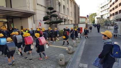 良い天気に恵まれた朝、子ども達は、元気に登校しています。