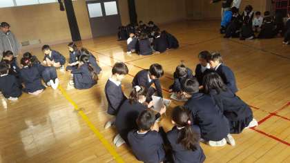 今朝の児童集会は、6年生抜きで行いました。6年生に送るお祝いカードを作るためです。5年生の副リーダーが中心となって作製しました。子ども達の思いがこもった作品になりました。