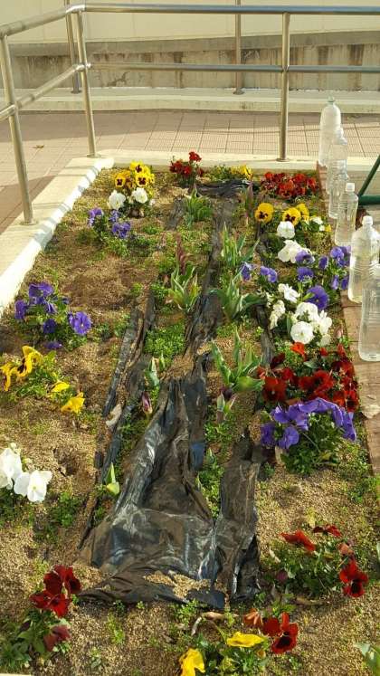 1年生のチューリップも咲き始めました。花壇は春の装いです。