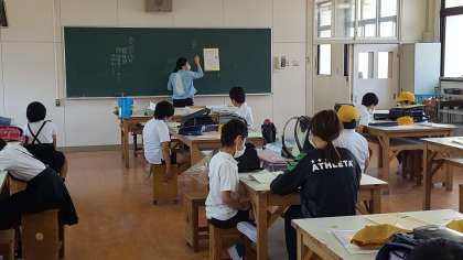 5年生は、国語の学習をしました。教科書を見ながら意見を述べていました。