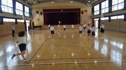 その後は講堂でドッジボールをしました。久しぶりにたくさん汗をかいた子が多くいました。