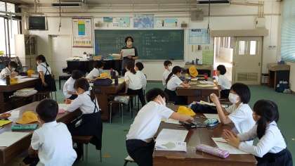 4年生は、算数の学習をしていました。大きな位の単元でした。数の仕組みについてよくわかりましたか。講堂では、スーパードッジボール?をしました。皆さん知ってドッジボールとは違うものでした。詳しくは、子ども達に聞いてみてください。