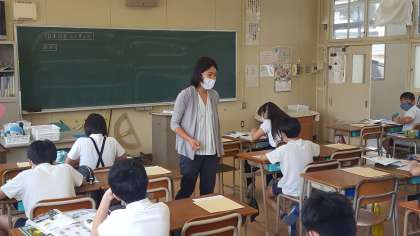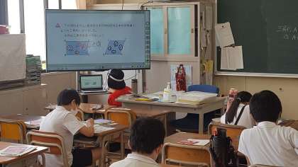 5年生は、算数の授業で、電子黒板に直接書きながら学習していました。