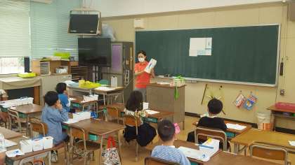 2年生は、図画工作の授業でした。絵の具の使い方を学んでいました。