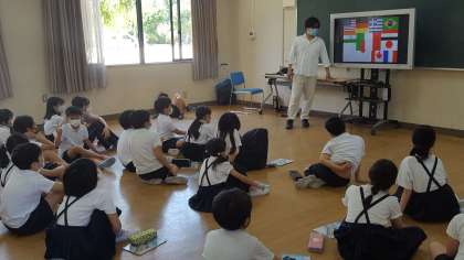4年生は、国の名前を英語で発音していました。