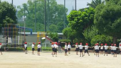 2年生は、体育の授業の様子です。大きく間を開けて並んでいました。
