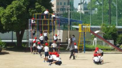 1年生の様子です。遊具の使い方を聞き、ルールを守って使っていました。