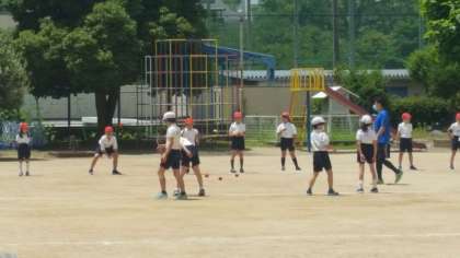 3年生は、ボールの投げ方を学んでいました。