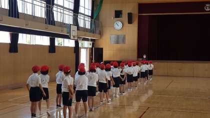2年生は、体育の授業でした。隊列の仕方について学んでいました。