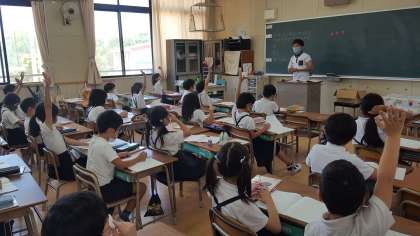 3年生は、算数の授業でした。2けたの掛け算の仕組みを学習をしていました。