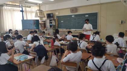 4年生は、理科の授業でした。水のしみこみ方の学習をしていました。